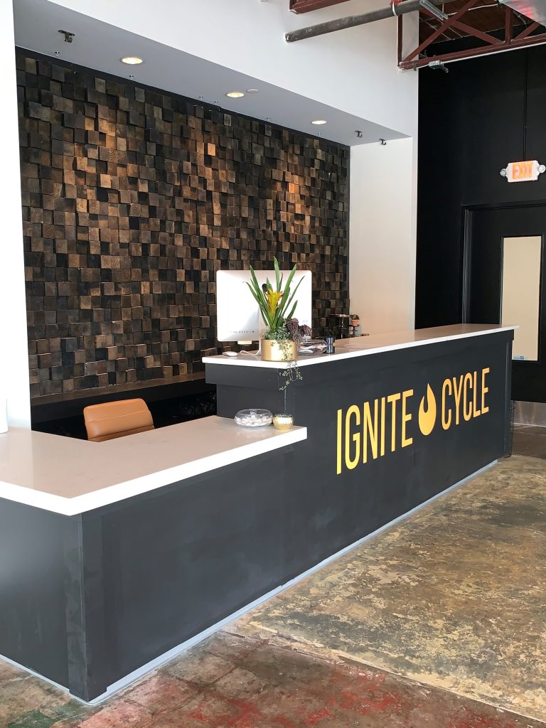New boutique cycling studio tenant fit-out in the trendy Pepperplace area. A few cool design aspects were the lighted wall panels in the cycling room and also the mirrored wall. 2019 Birmingham Business Journal Building Birmingham Award Winner 2019 ABC Excellence in Construction Award Winner Nick Miele, Project Manager Gary Beane, Superintendent
